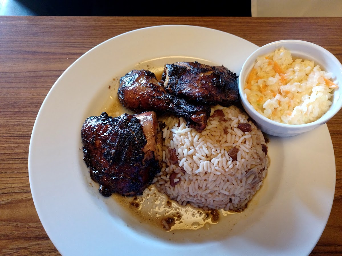 This place is great for a quiet lunch and the food is very good. The waitress and chef are welcoming and very friendly. Service can be quiet slow. It took at least 15 mins to be offered a drink and your order takes a bit of time. However, the food is fresh and tasty - definitely worth the wait. I had a mango daiquiri to start my meal and then I had a combo plate - rice and peas; oxtail; fried chicken; and coleslaw. Dessert was a complimentary slice of cheesecake for my mom's birthday.